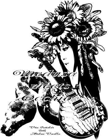 メデューサ三部作の三作目で、グリーンパイソンを従えたメデューサです。爬虫類と女の子のバランスと、びーたさんのギターの配置に特に気を配りました。